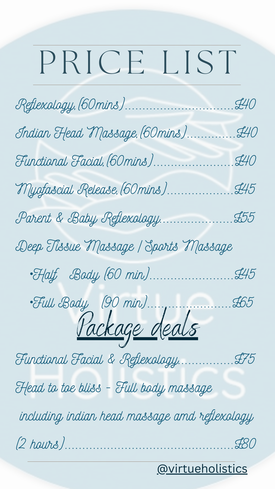 Experience the healing power of foot reflexology, a therapeutic technique that applies pressure to specific points on the feet to promote overall well-being and balance in the body. As a reflexologists I will help stimulate the corresponding areas to relieve tension, improve circulation, and support your body's natural healing process. £40 full session. (60minutes)